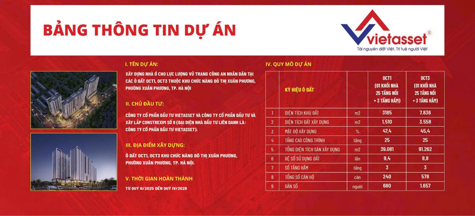 Chủ đầu tư: CÔNG TY CỔ PHẦN ĐẦU TƯ VIETASSET (ĐẠI DIỆN NHÀ ĐẦU TƯ LIÊN DANH CÔNG TY CỔ PHẦN VIETASSET VÀ CÔNG TY CỔ PHẦN ĐẦU TƯ VÀ XÂY LẮP CONSTREXIM SỐ 8)